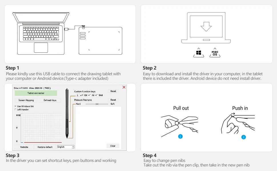 The pen features 8192 levels of pressure sensitivity, allowing you to draw lines of varying thickness based on the pressure applied, making lines smoother and more natural, helping you capture ideas faster and more easily.