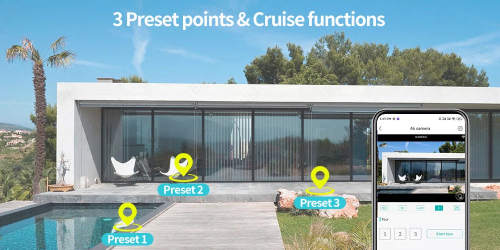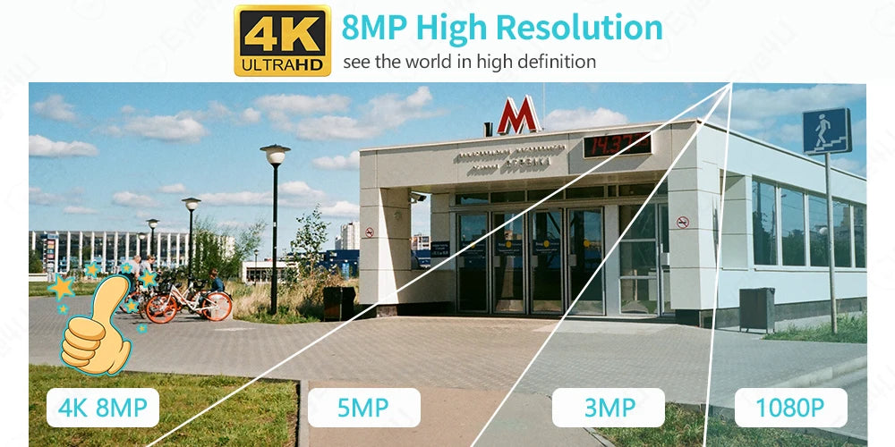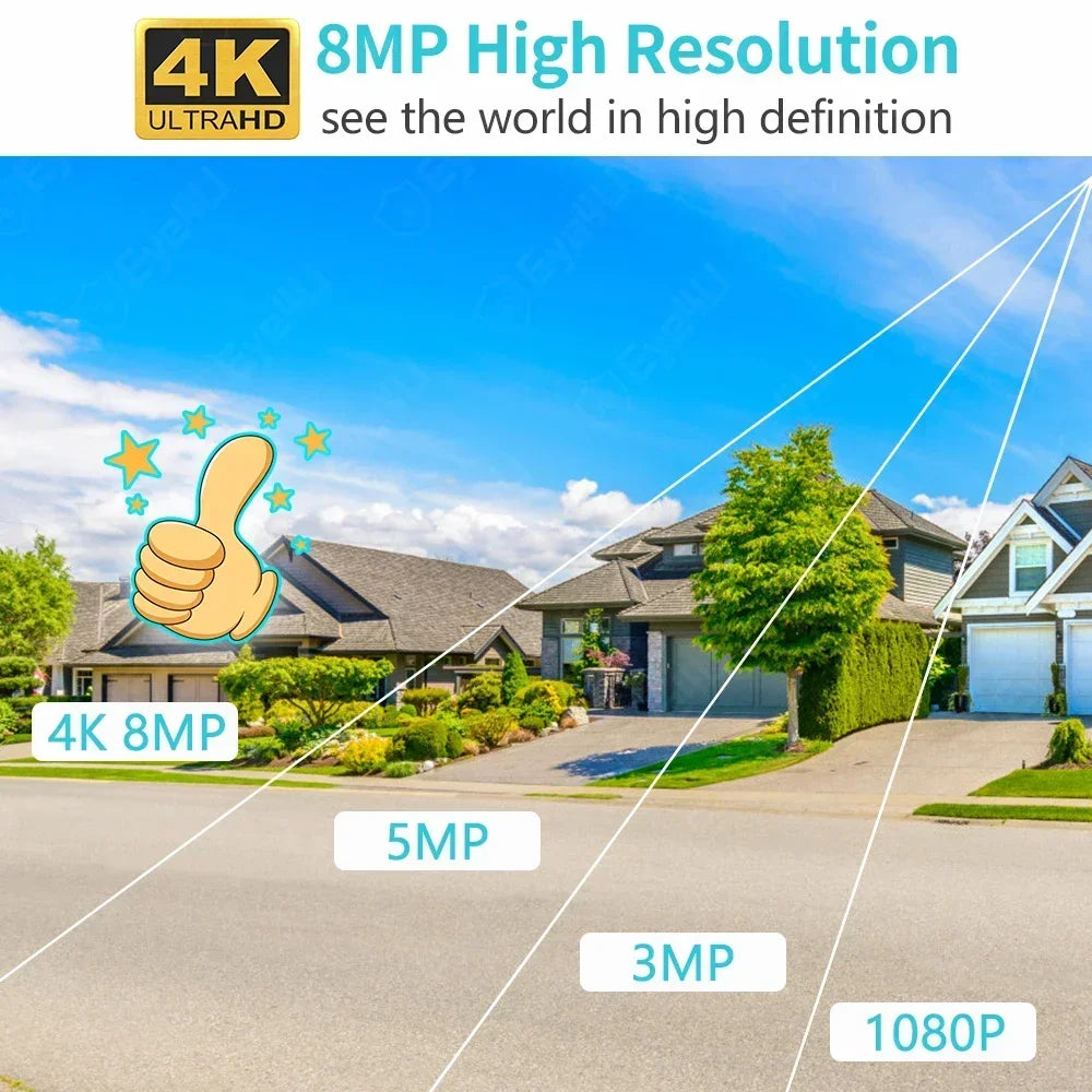* We have 3 kinds of pixels cameras for you to choose, 4K 8MP/5MP/1080P, which can meet your various needs, you can see every corner of your yard/door/warehouse/company