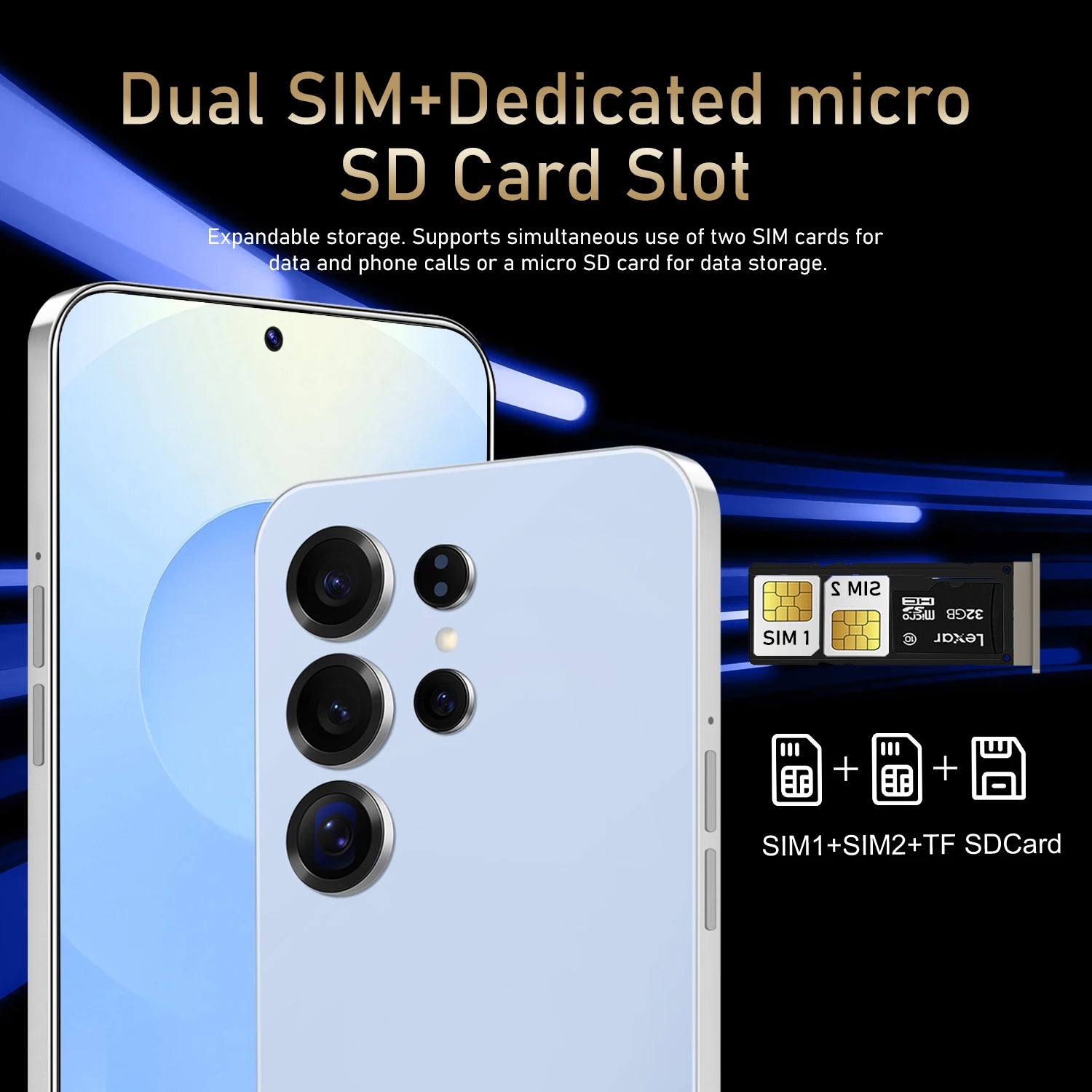 3.Standby:Dual sim dual standby(Dual SIM+Dedicated micro SD Card Slot)