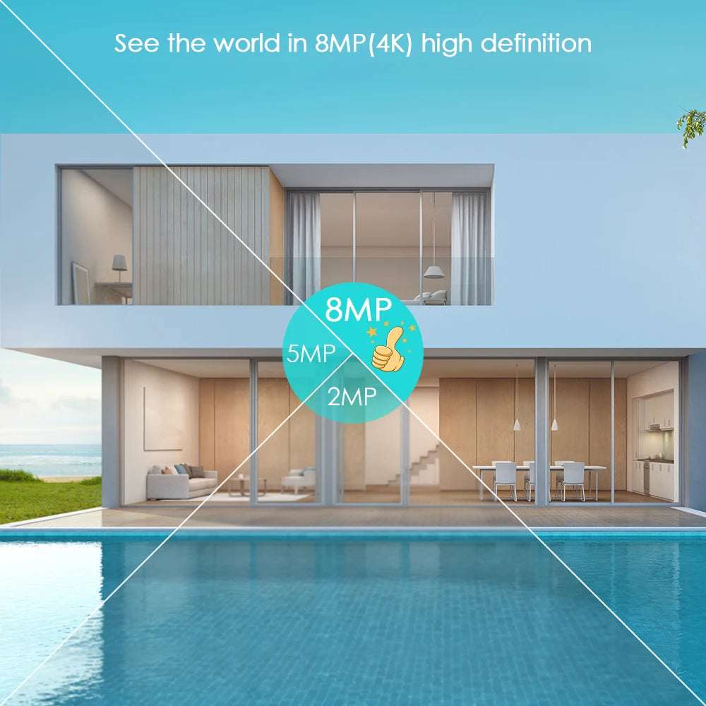 Three kinds of pixels for you to choose. 8MP=4K features higher definition- superior than 2MP and 5MP. Bring you a smooth and stunning super HD experience.