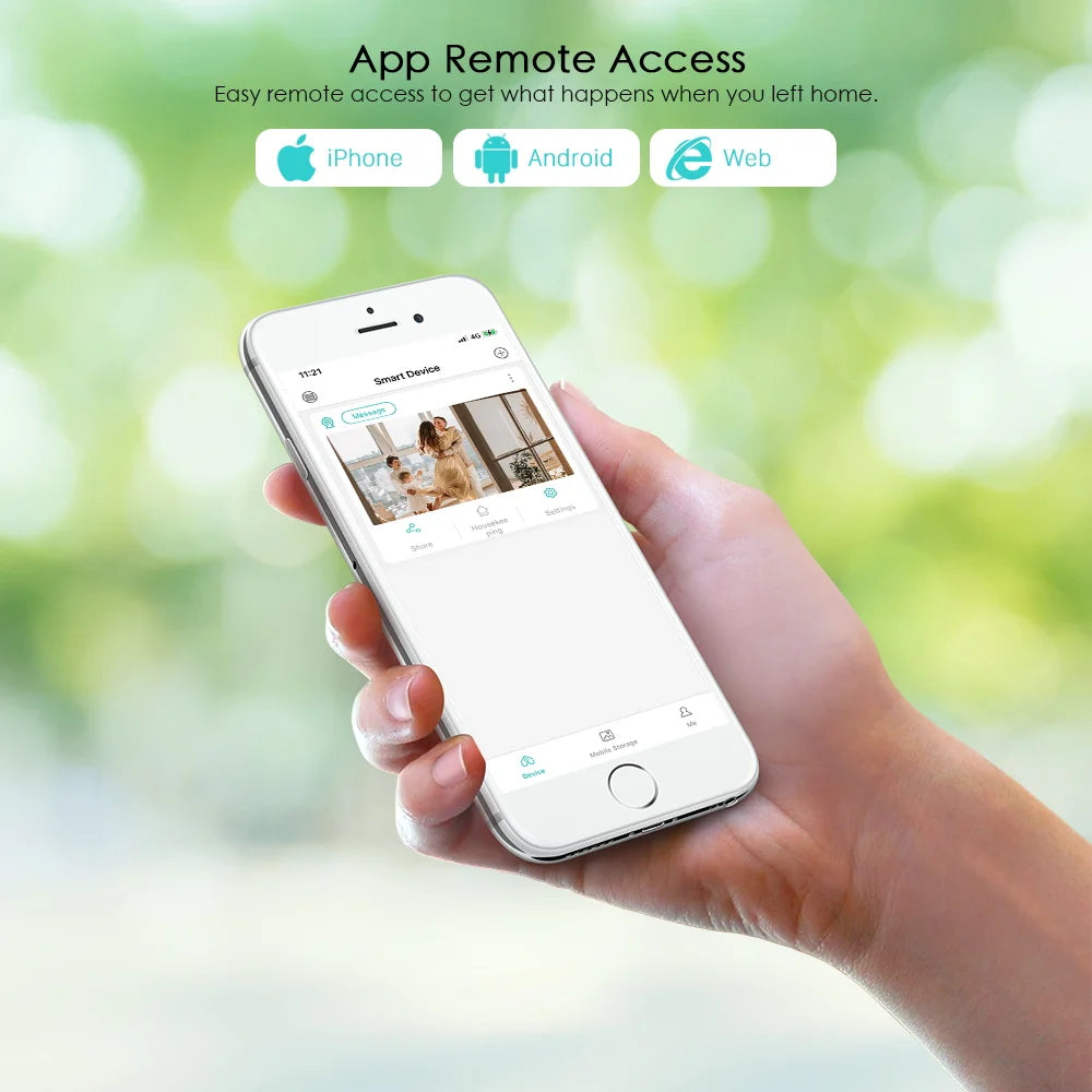 This home security camera system lets you listen in and talk back through the built in speaker and microphone that work directly through your iPhone or Android Mic. Enjoy the convenient communication when you're resting or busying.